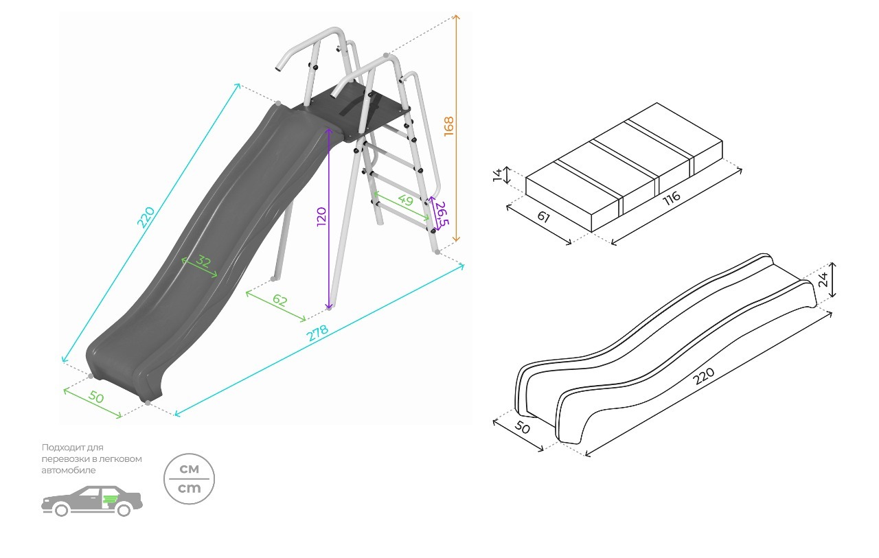 Горка предназначена для использования детьми разных возрастов. Допустимая нагрузка на изделие не более 100кг.
