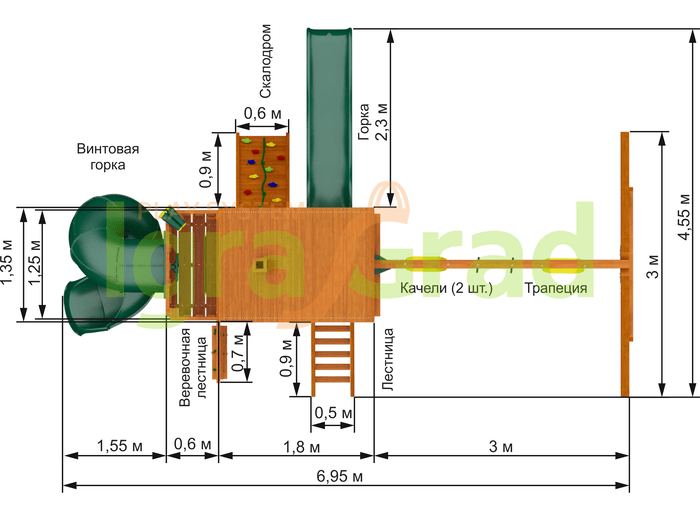 - горка: 300*500*2900, 1 шт., 22,00 кг. (транспортировка только в жёсткой упаковке!)