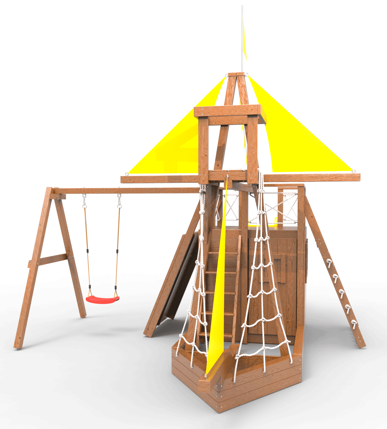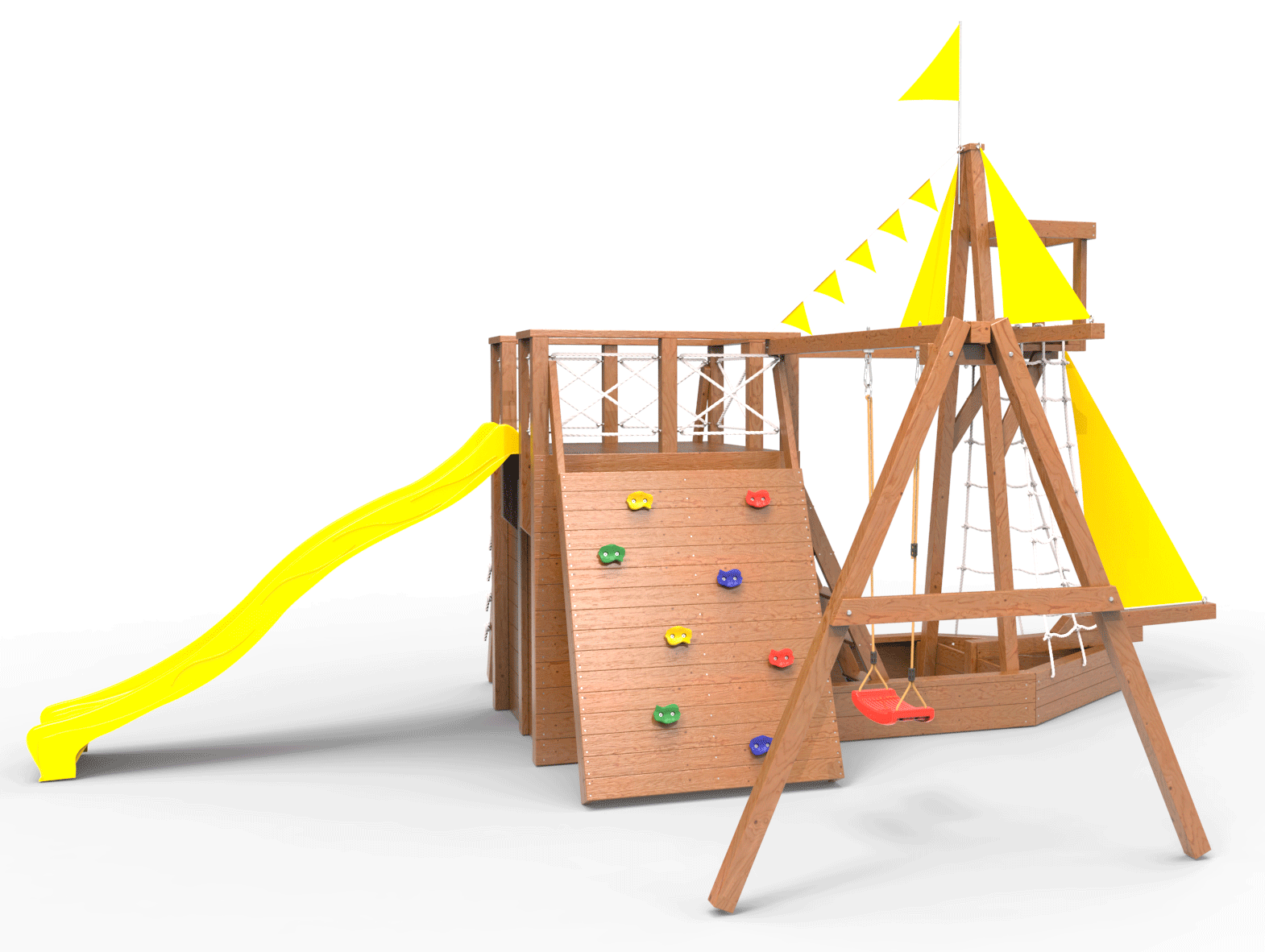 Большой корабль под настоящими парусами умчит вашего ребенка в мир его фантазий, где можно найти клад на островах, посетить невиданные страны, подружиться с необычными морскими обитателями. Такое чудо увлечет любого малыша! А благодаря тому, что в комплектацию «Корабля Океан» входят и классические элементы детских площадок: горка, качели, песочница, скалодром, сеть для лазания и домик – игры будут разнообразнее и полезнее.