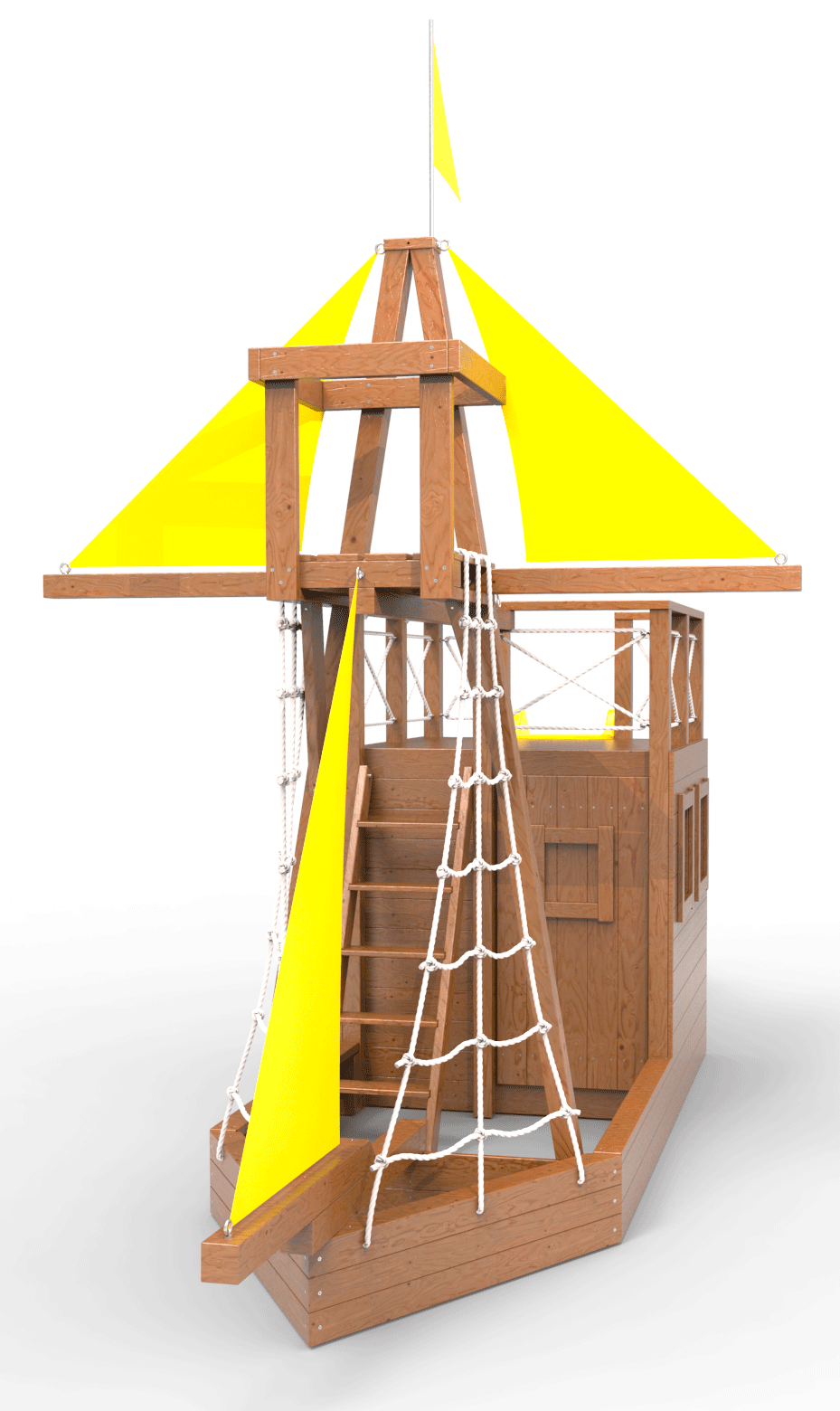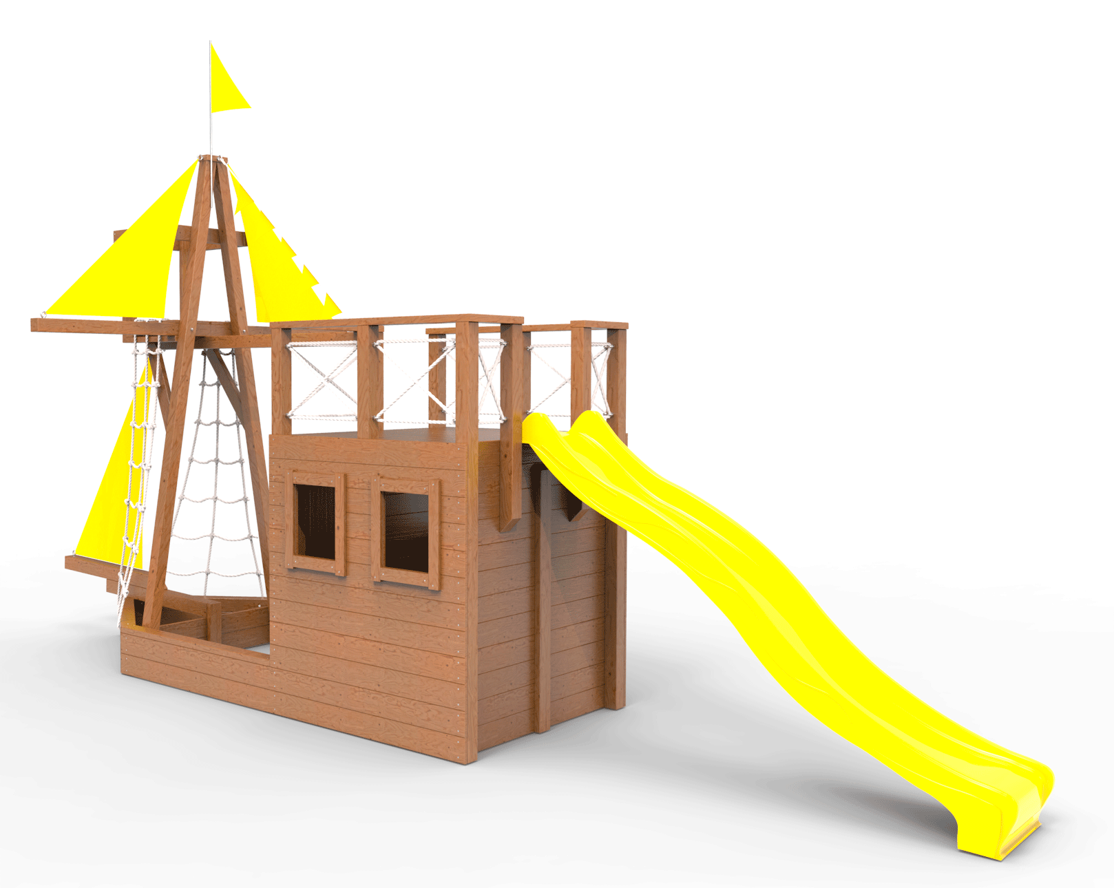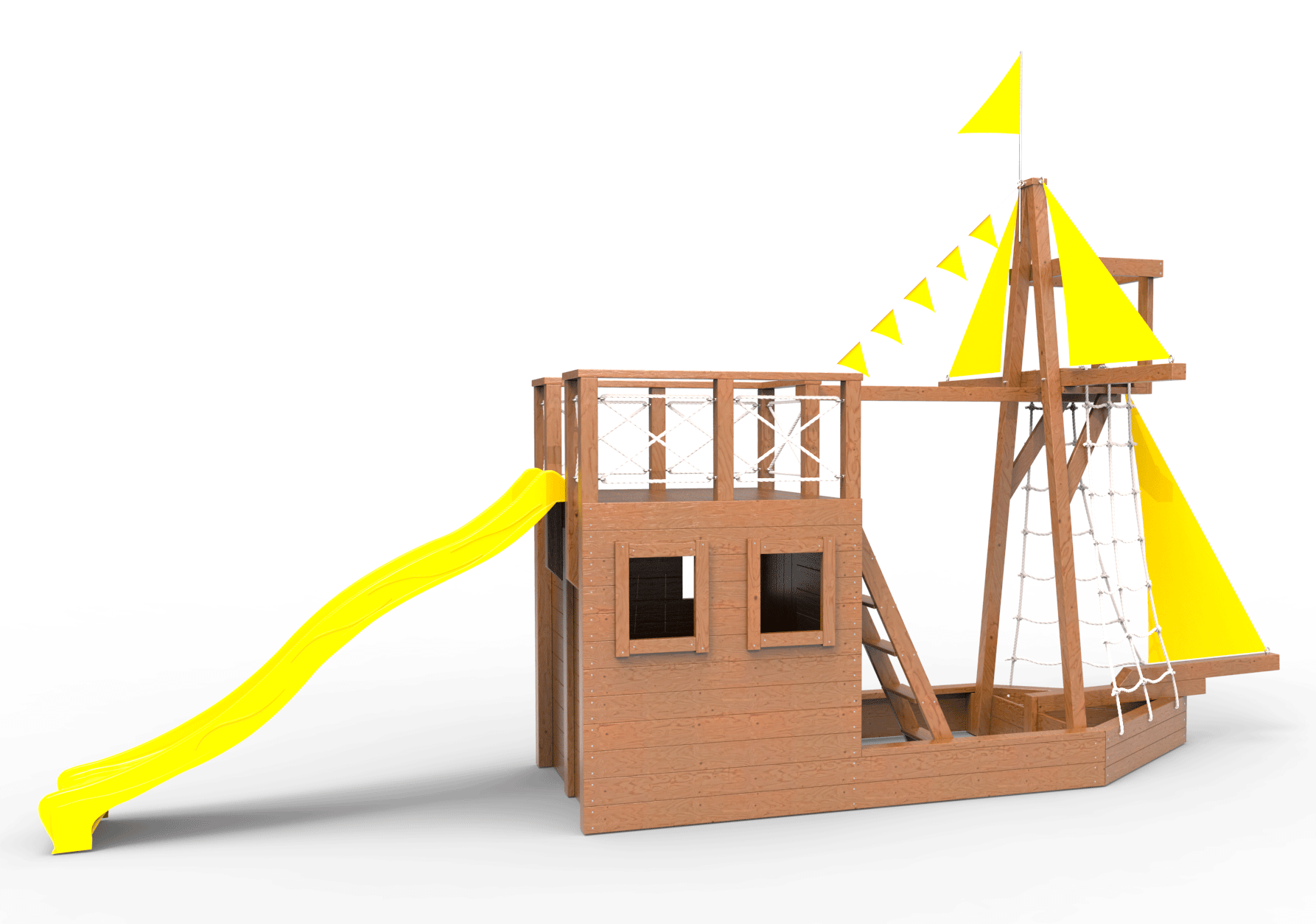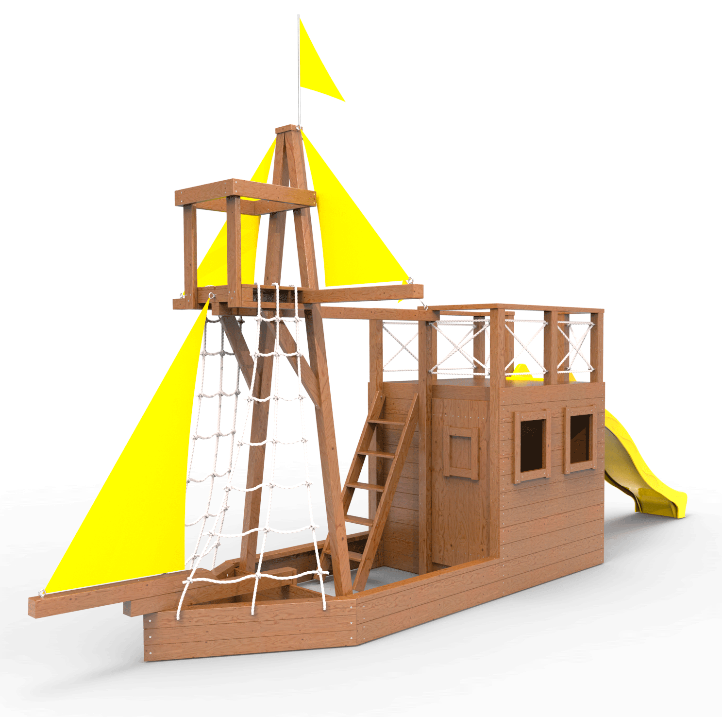 Только представьте корабль с парусами, наполняемыми ветром, с настоящей смотровой площадкой, штурвалом и уютной каютой - и все это в распоряжении вашего маленького путешественника. С такой площадкой малышу никогда не будет скучно, будь он пиратом, отважным капитаном или милой принцессой. Площадь корабля и его конструкция позволяет разыгрывать бесчисленное множество сценариев игр, а также Вы легко сможете дополнить детскую площадку спортивными и игровыми элементами, чтобы малышу стало еще веселее.