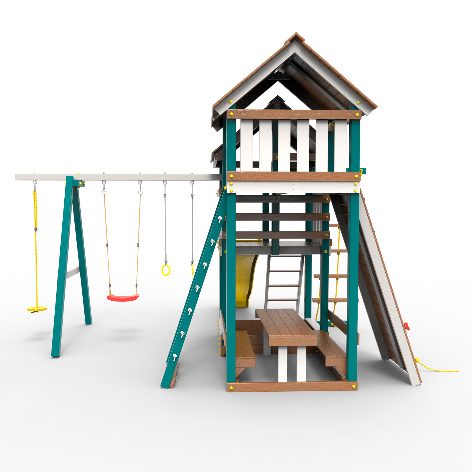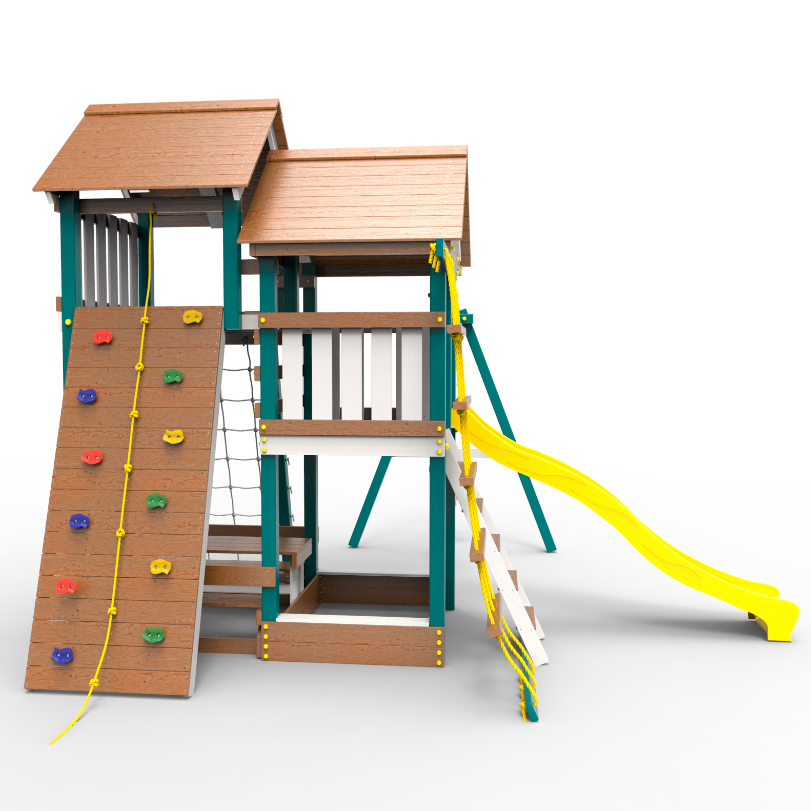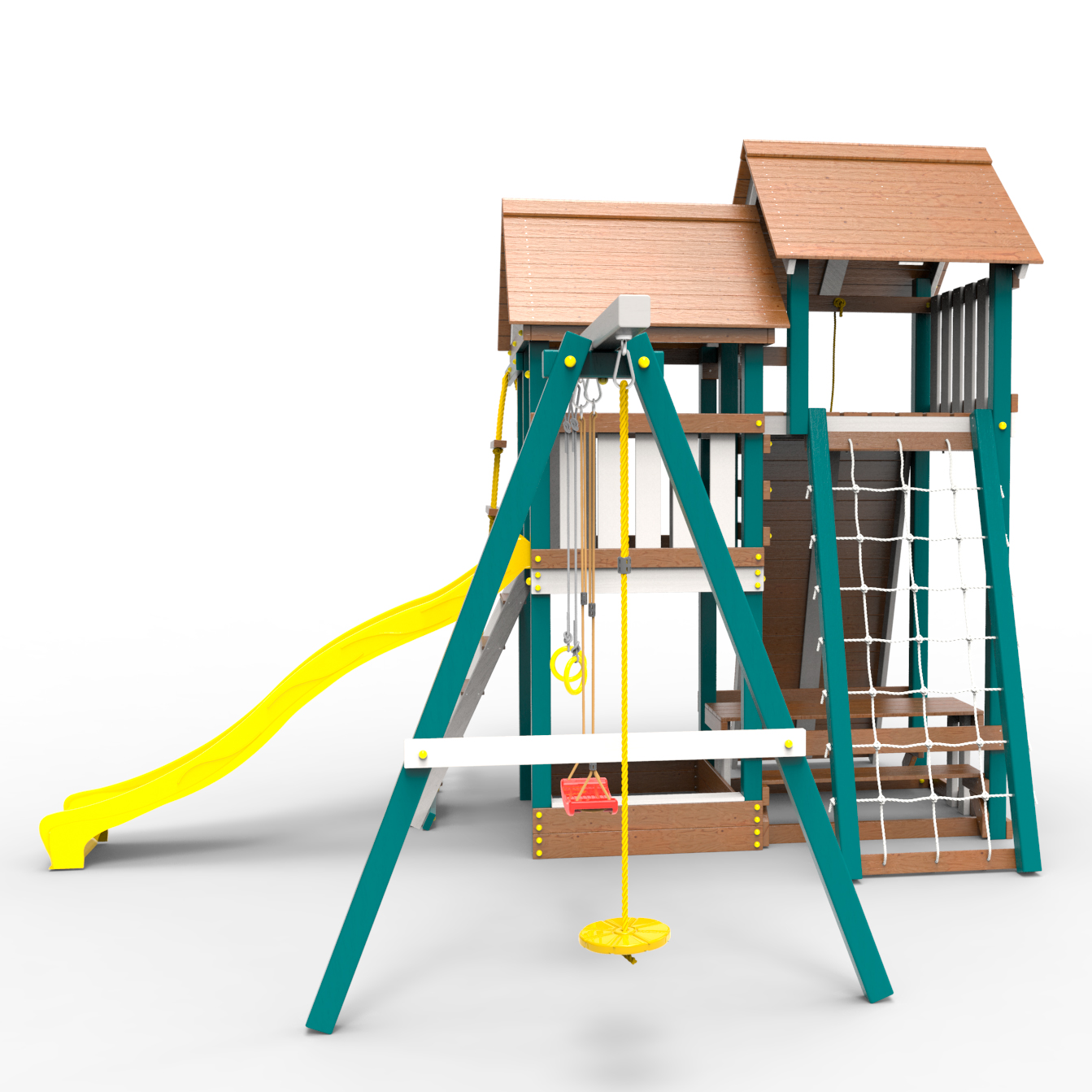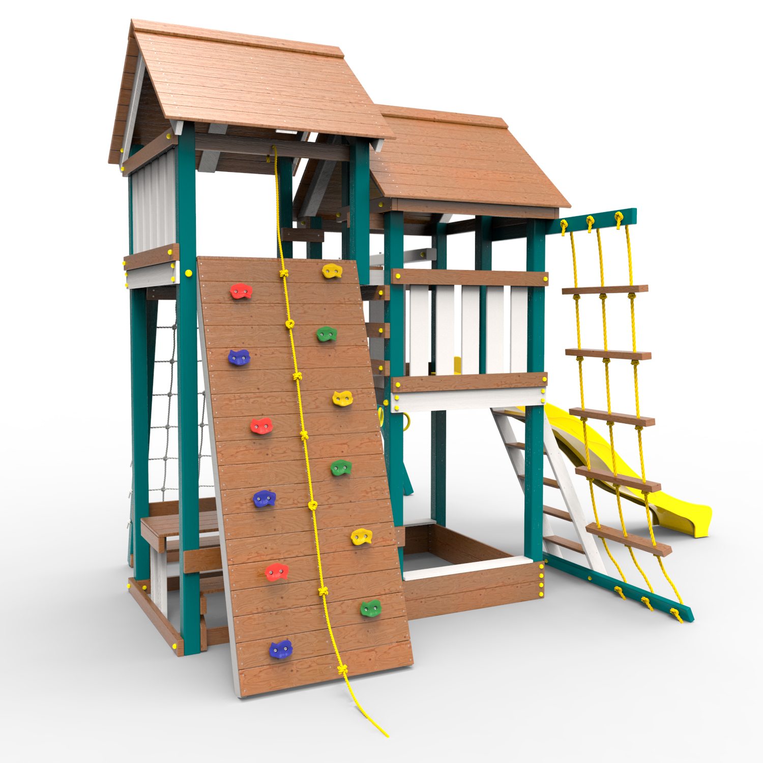Обращаем Ваше внимание, что фактический цвет детской площадки может отличаться от представленных фото на сайте. Специфика окраски нетоксичными пропитками и красителями допускает отклонения в цветовой гамме отгружаемых изделий. Также обратите внимание, что фактический цвет может отличаться из-за цветопередачи устройства на котором Вы смотрите фото.