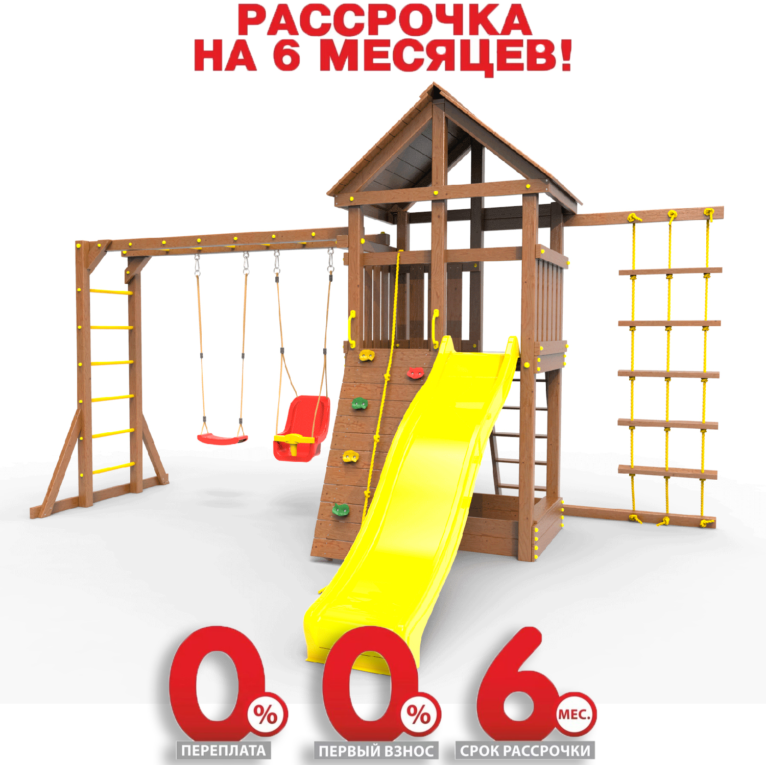 Обращаем Ваше внимание, что фактический цвет детской площадки может отличаться от представленных фото на сайте. Специфика окраски нетоксичными пропитками и красителями допускает отклонения в цветовой гамме отгружаемых изделий. Также обратите внимание, что фактический цвет может отличаться из-за цветопередачи устройства на котором Вы смотрите фото.