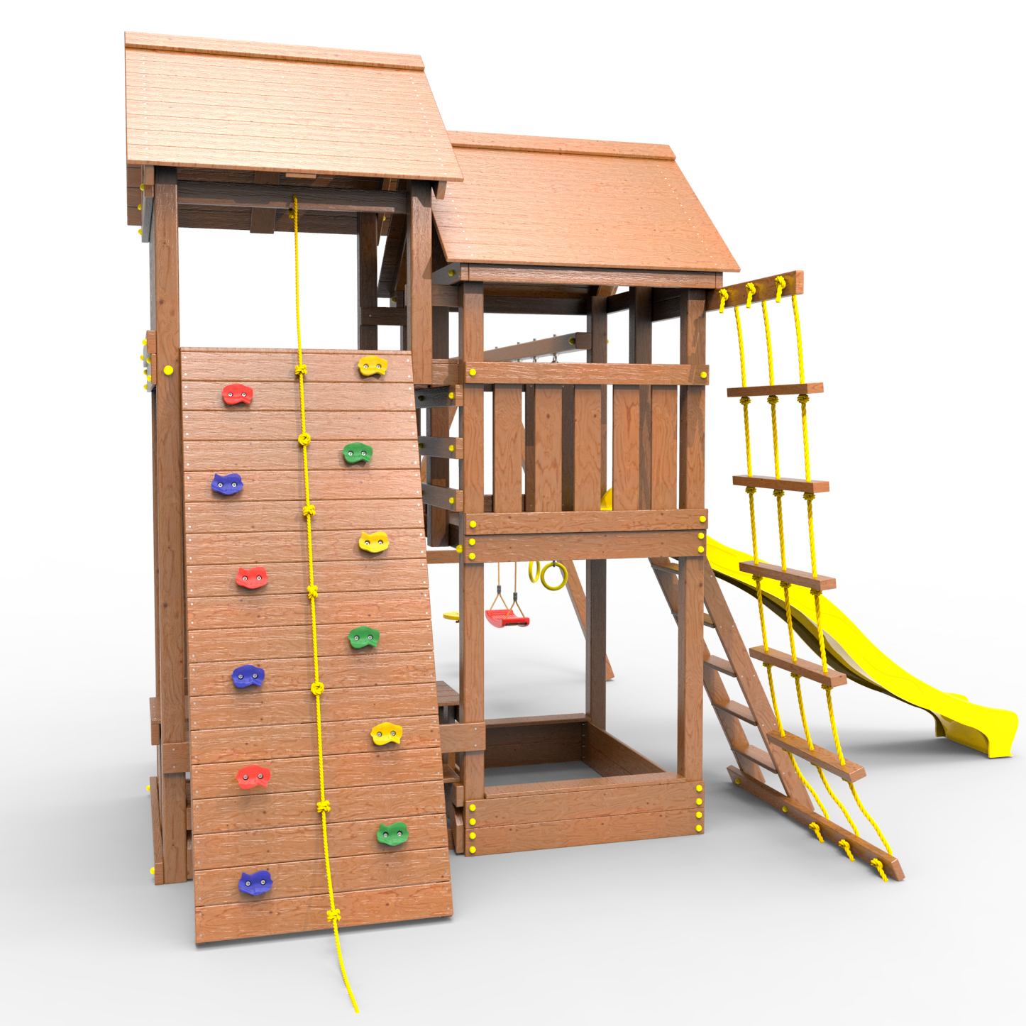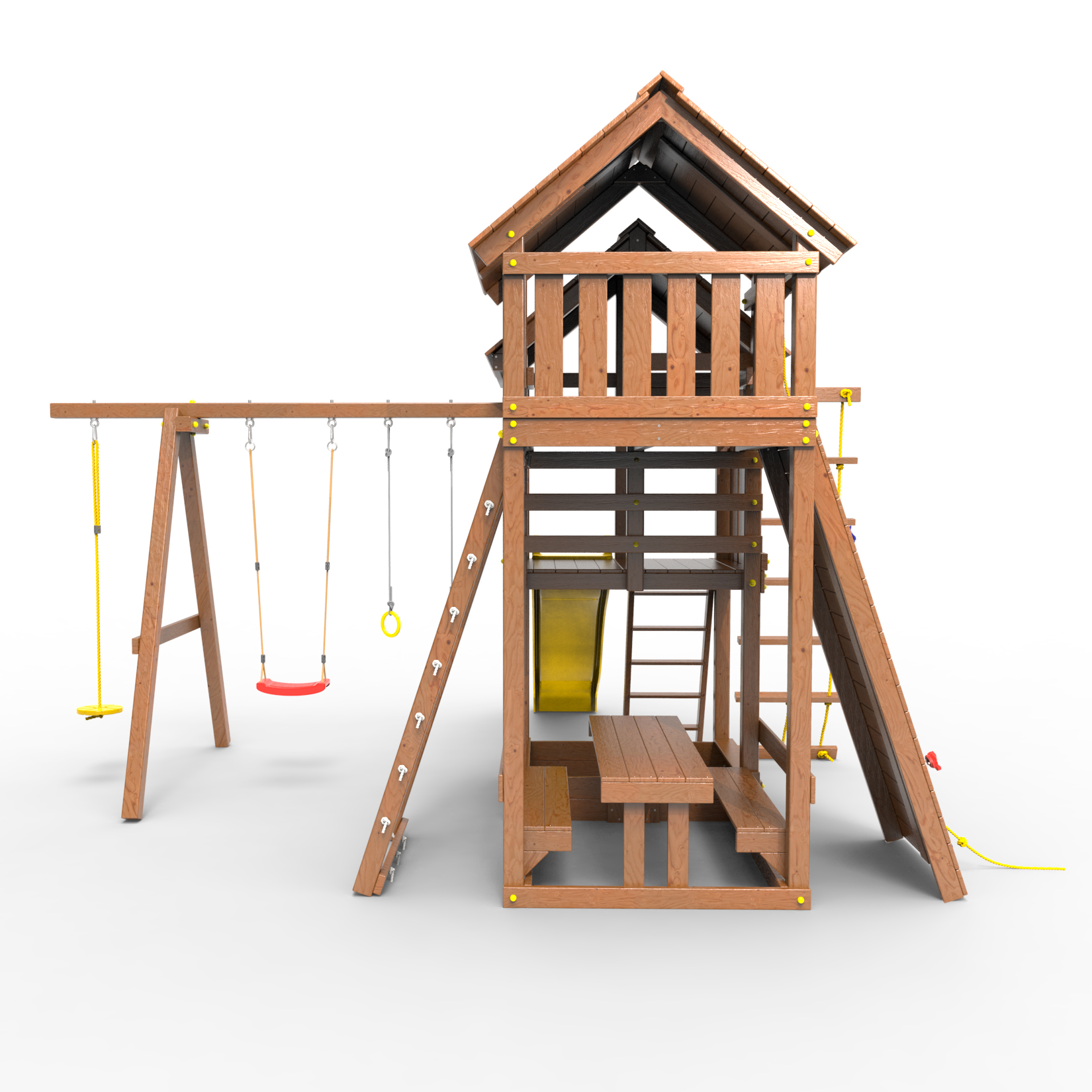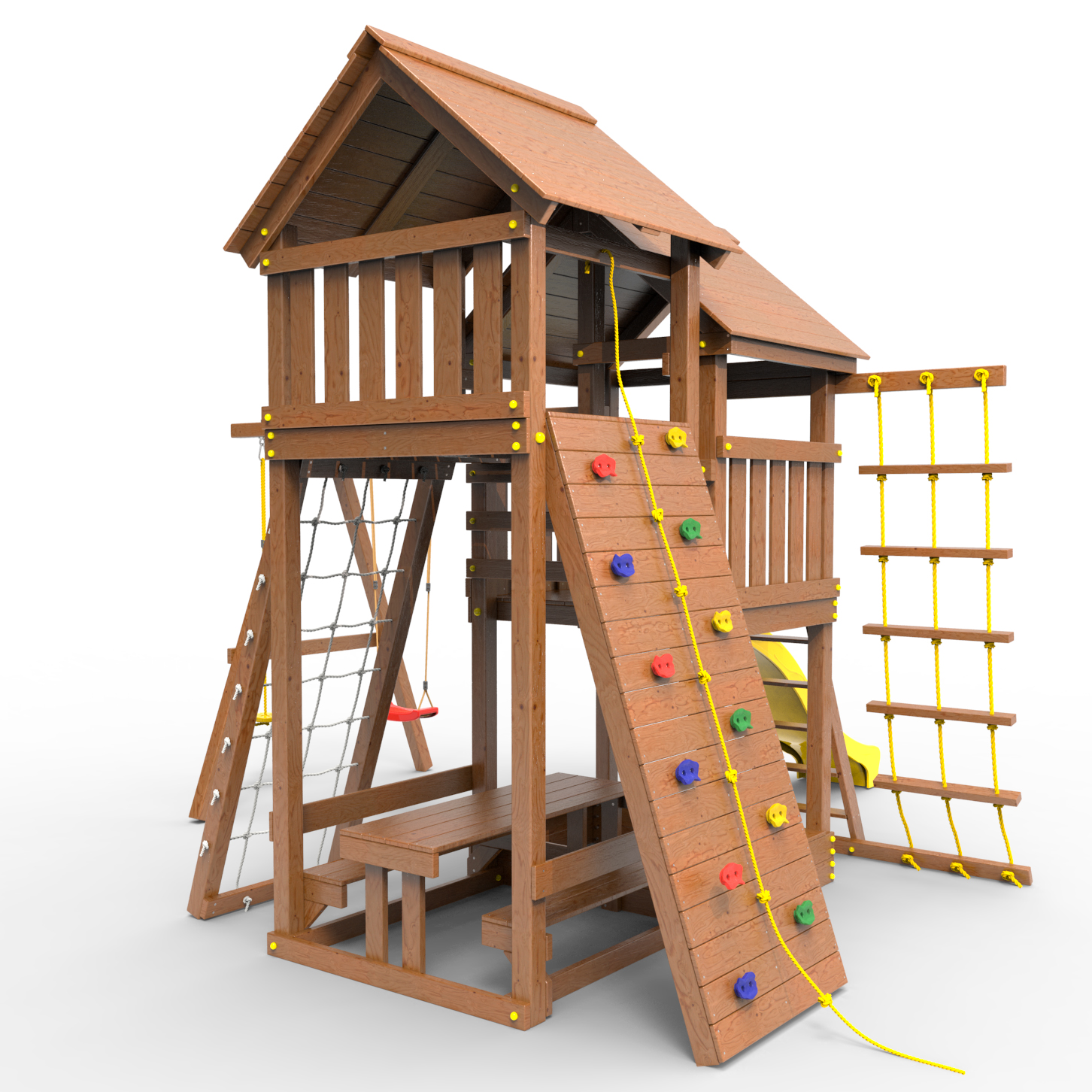 Обращаем Ваше внимание, что фактический цвет детской площадки может отличаться от представленных фото на сайте. Специфика окраски нетоксичными пропитками и красителями допускает отклонения в цветовой гамме отгружаемых изделий. Также обратите внимание, что фактический цвет может отличаться из-за цветопередачи устройства на котором Вы смотрите фото.