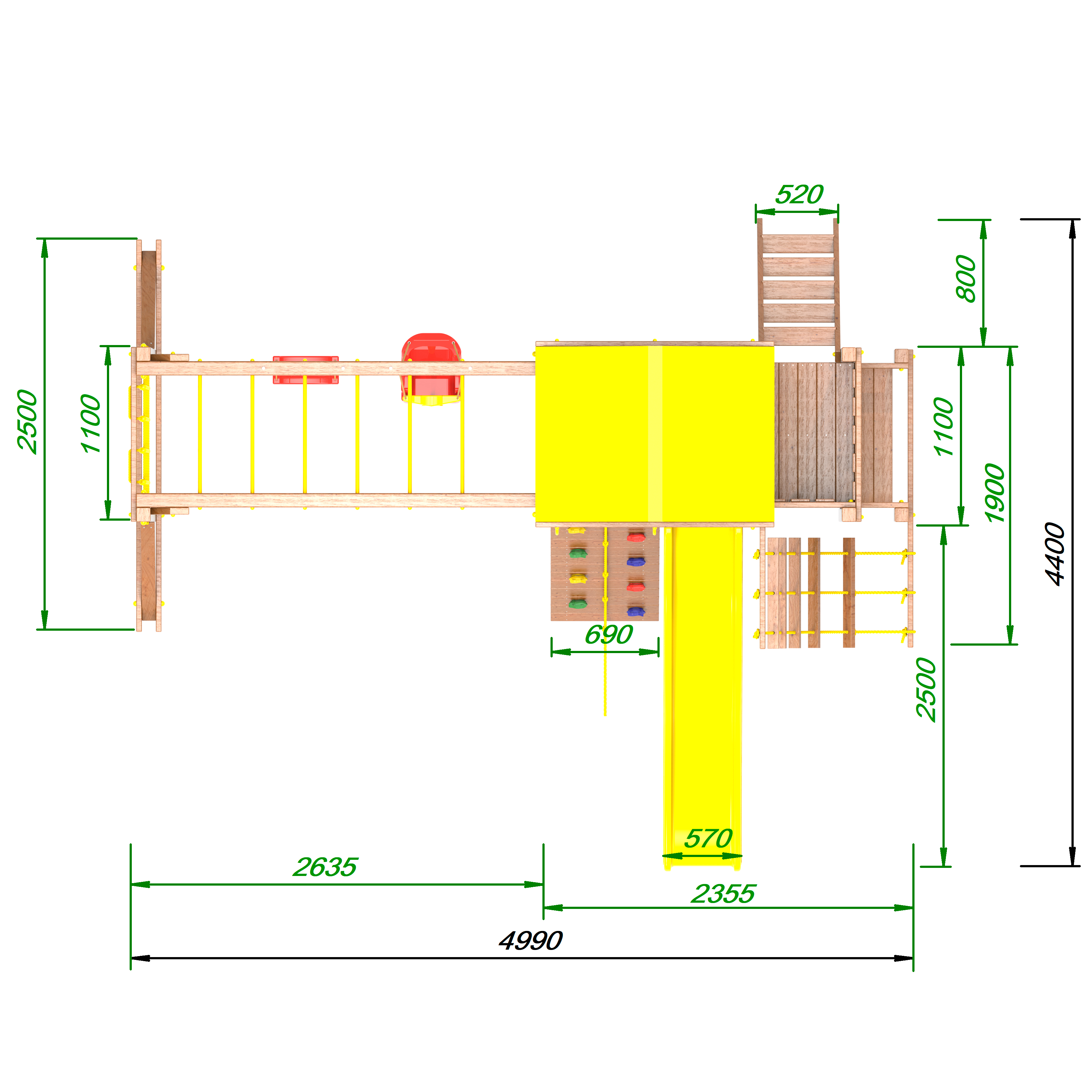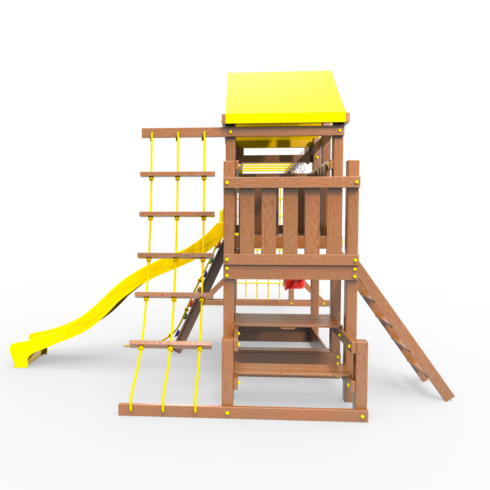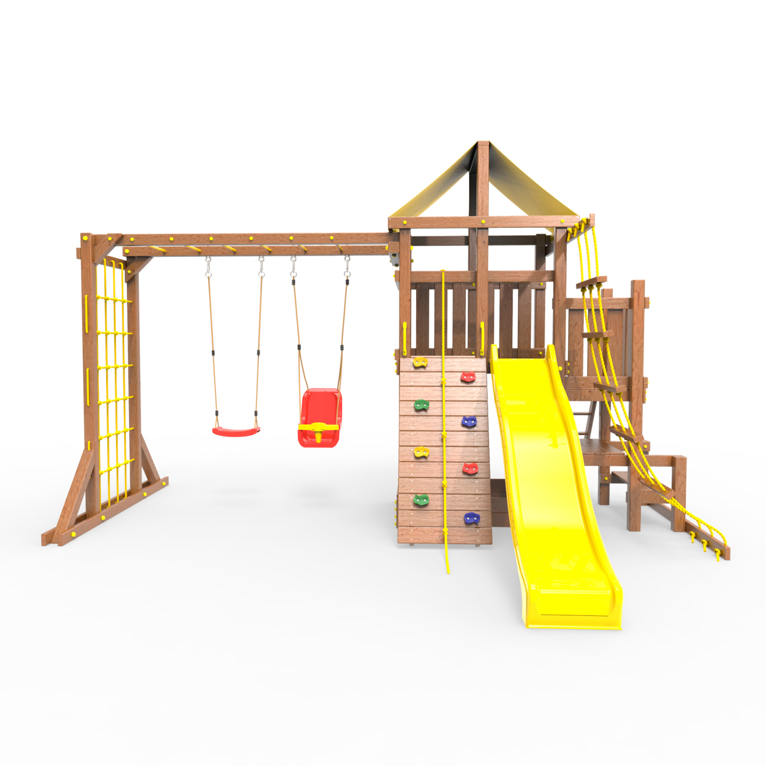 | Комплектация | Домик|Песочница|Лестница|Шторм-трап|Скалодром|Балкон|Столик с лавочками|Горка|Качели|Рукоход|Руфер|Сеть для лазания |