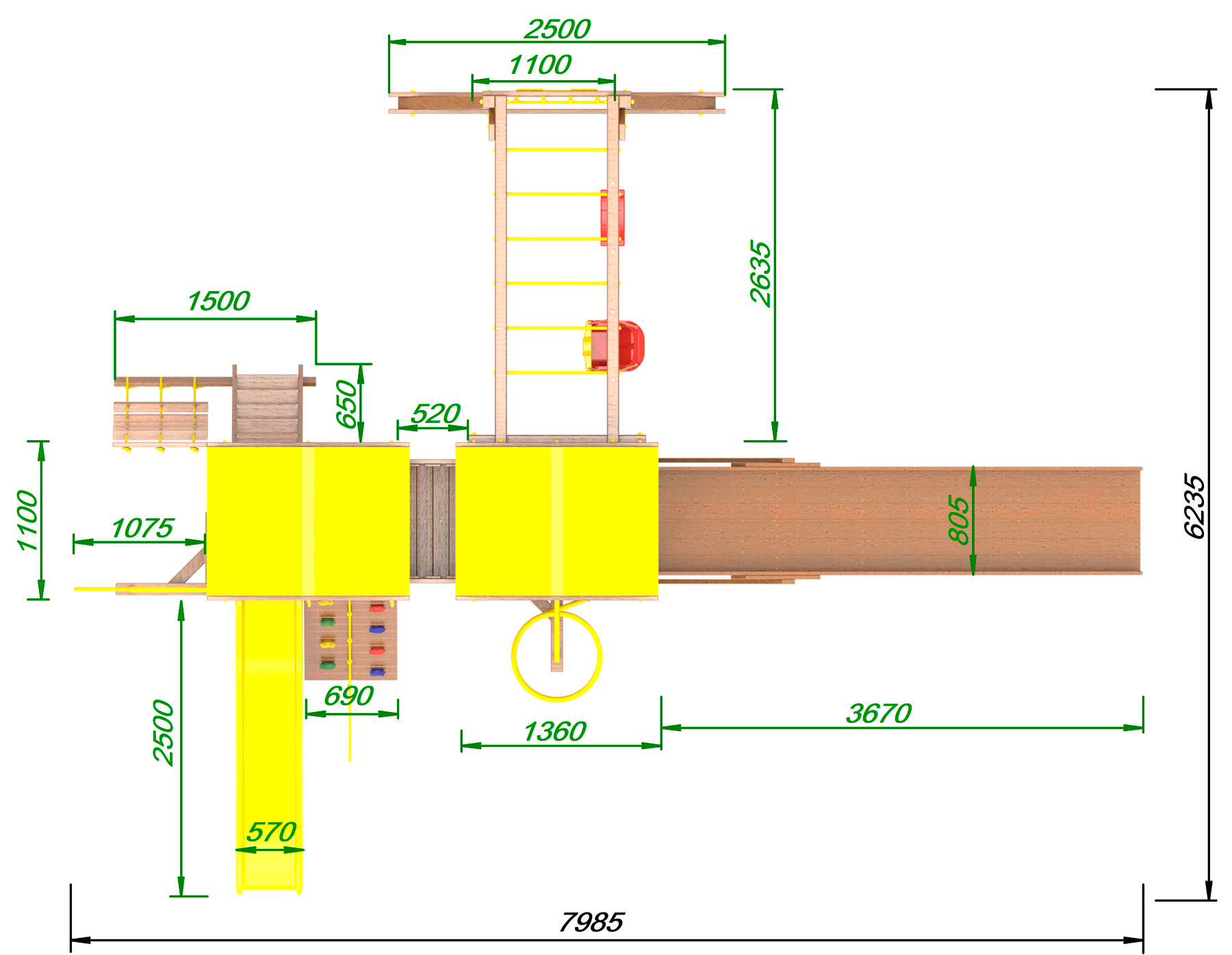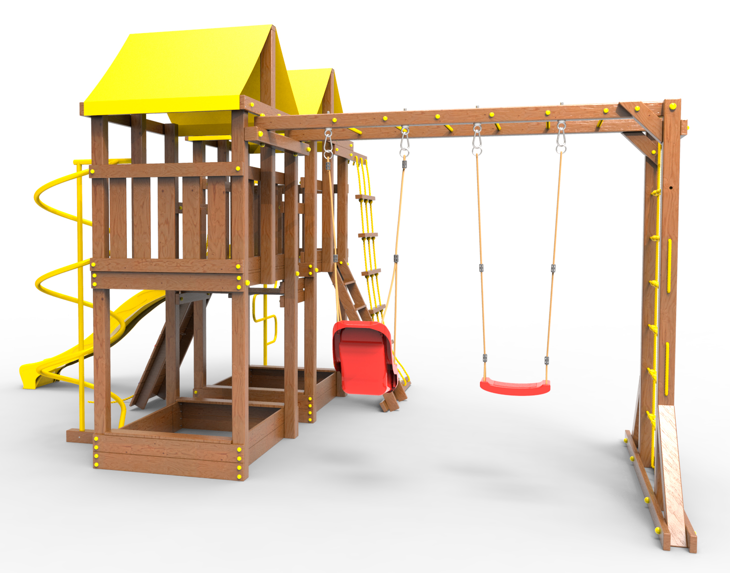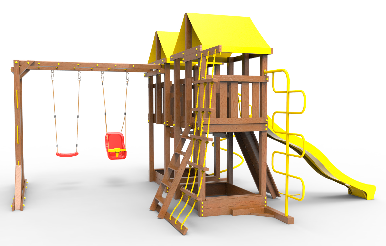 Обращаем Ваше внимание, что фактический цвет детской площадки может отличаться от представленных фото на сайте. Специфика окраски нетоксичными пропитками и красителями допускает отклонения в цветовой гамме отгружаемых изделий. Также обратите внимание, что фактический цвет может отличаться из-за цветопередачи устройства на котором Вы смотрите фото.
