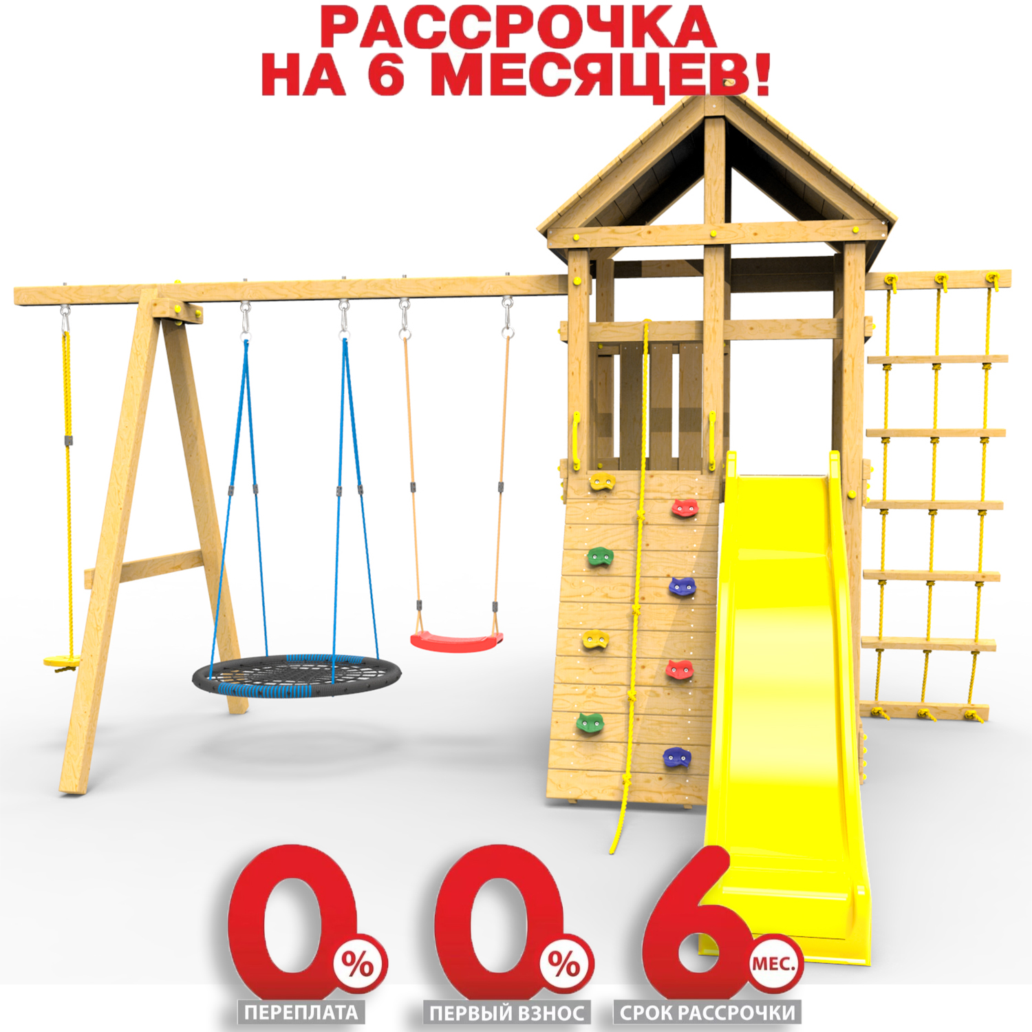 Обращаем Ваше внимание, что фактический цвет детской площадки может отличаться от представленных фото на сайте. Специфика окраски нетоксичными пропитками и красителями допускает отклонения в цветовой гамме отгружаемых изделий. Также обратите внимание, что фактический цвет может отличаться из-за цветопередачи устройства на котором Вы смотрите фото.