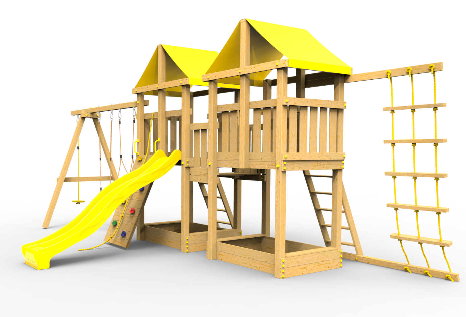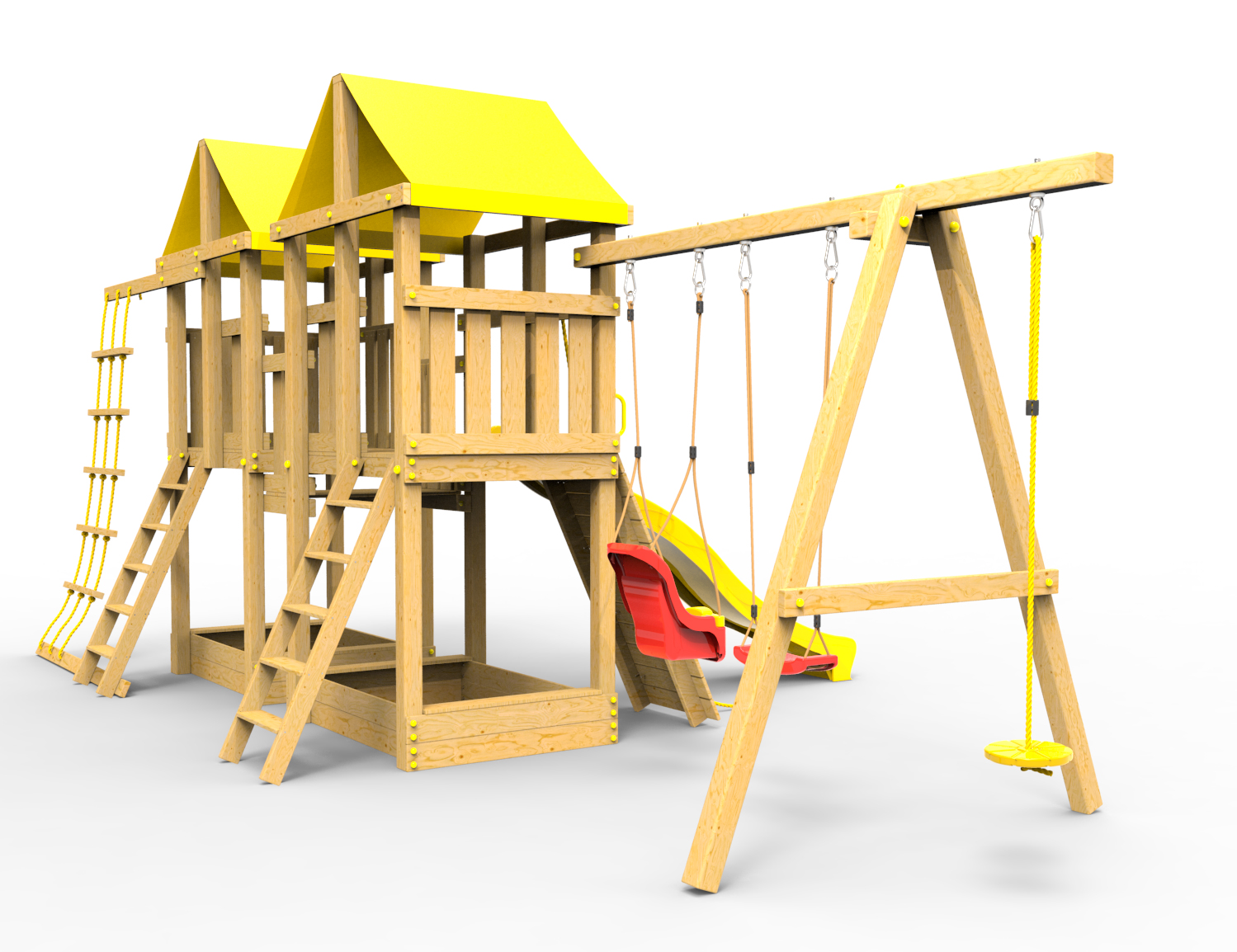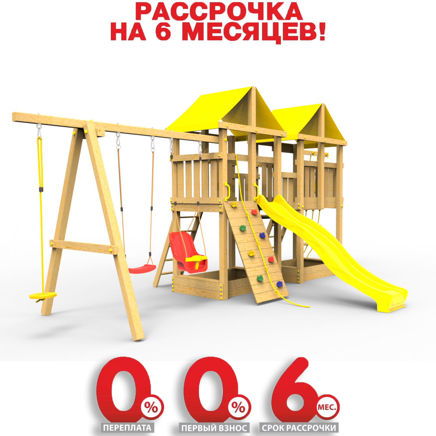 Обращаем Ваше внимание, что фактический цвет детской площадки может отличаться от представленных фото на сайте. Специфика окраски нетоксичными пропитками и красителями допускает отклонения в цветовой гамме отгружаемых изделий. Также обратите внимание, что фактический цвет может отличаться из-за цветопередачи устройства на котором Вы смотрите фото.