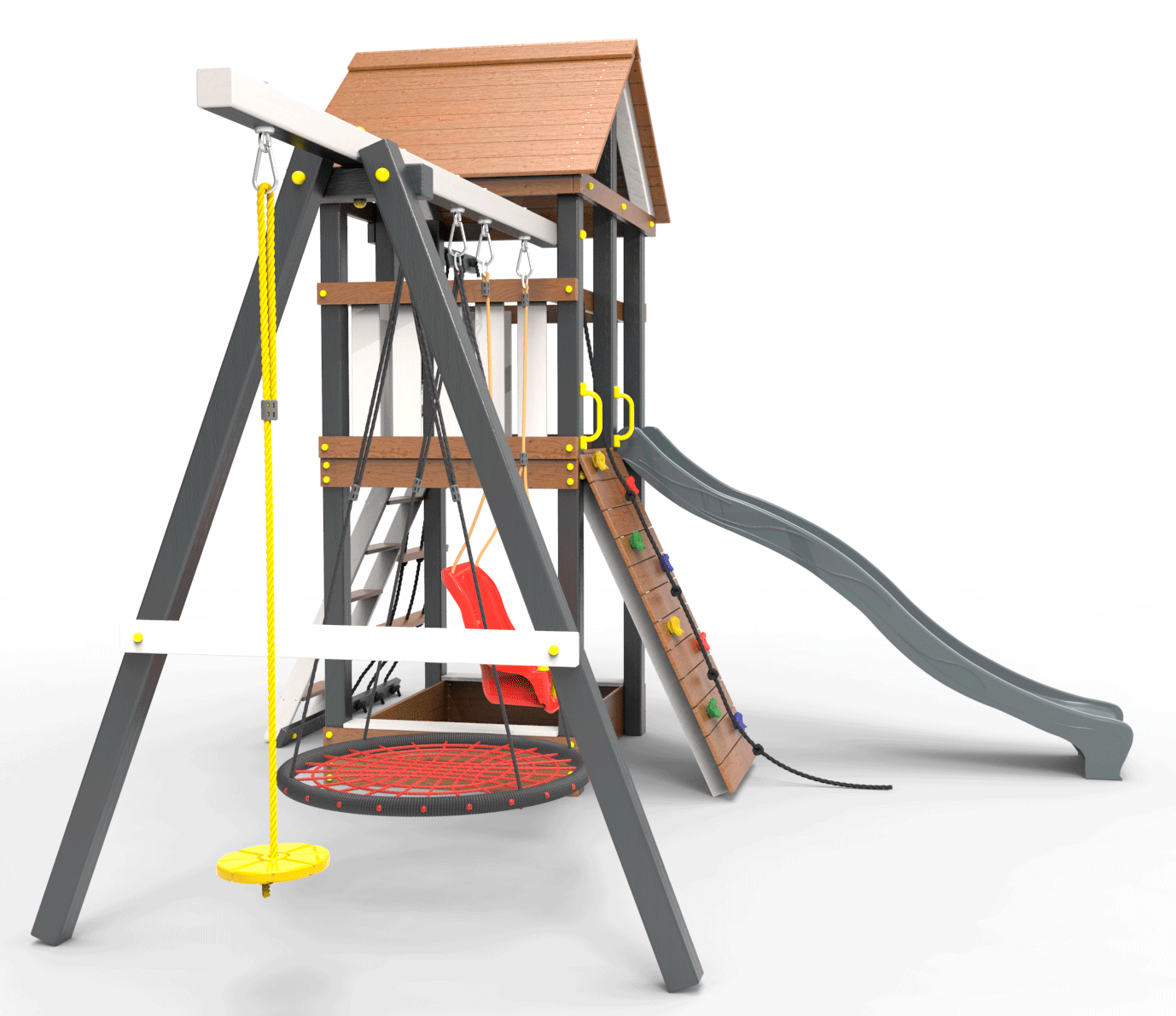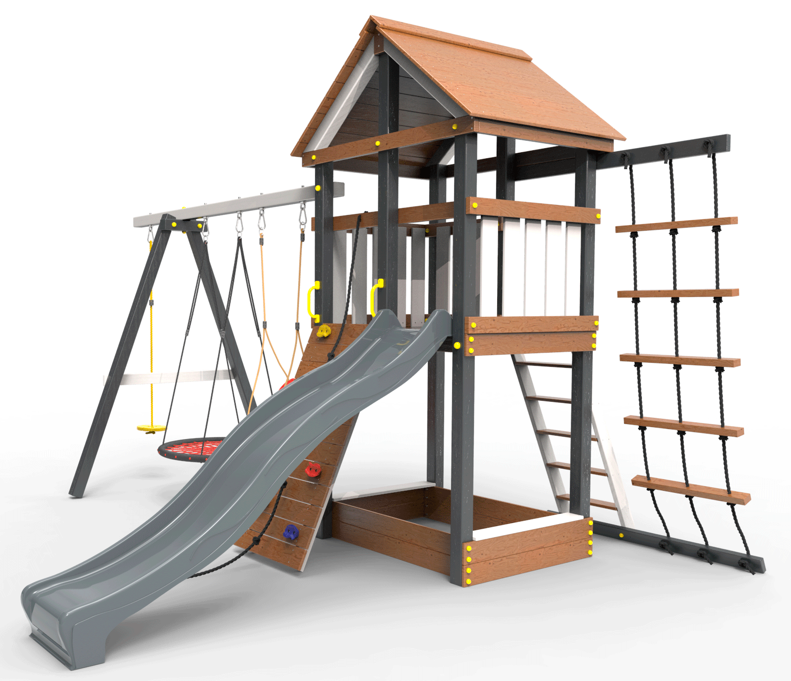 Обращаем Ваше внимание, что фактический цвет детской площадки может отличаться от представленных фото на сайте. Специфика окраски нетоксичными пропитками и красителями допускает отклонения в цветовой гамме отгружаемых изделий. Также обратите внимание, что фактический цвет может отличаться из-за цветопередачи устройства на котором Вы смотрите фото.