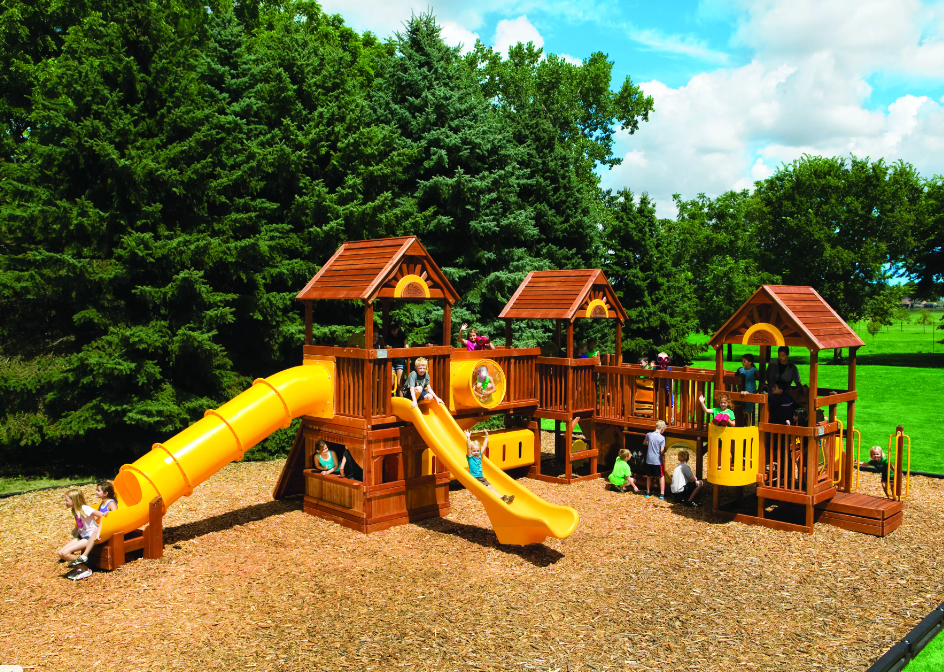 На его территории дети смогут играть как в подвижные, так и в спокойные игры. Двускатная крыша будет укрывать малышей от солнца и дождя, а надёжные рукояти и невысокие ступеньки делают игровую площадку доступной для детей-инвалидов.