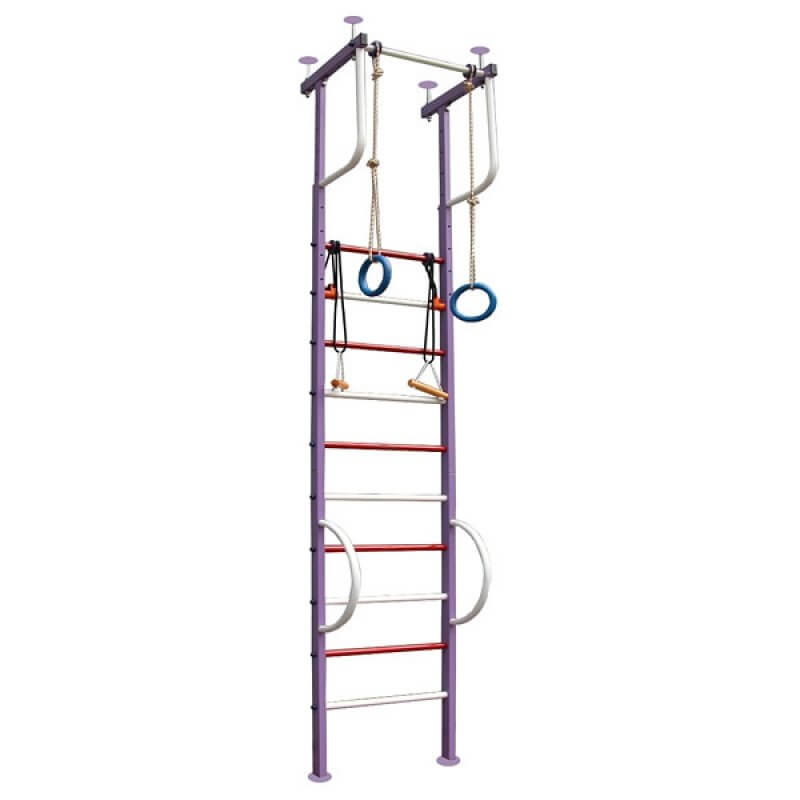 Комплектация: металлическая шведская стенка, кольца гимнастические, резиновые эспандеры, два "U"-образных упора, два "Г"-образных турника