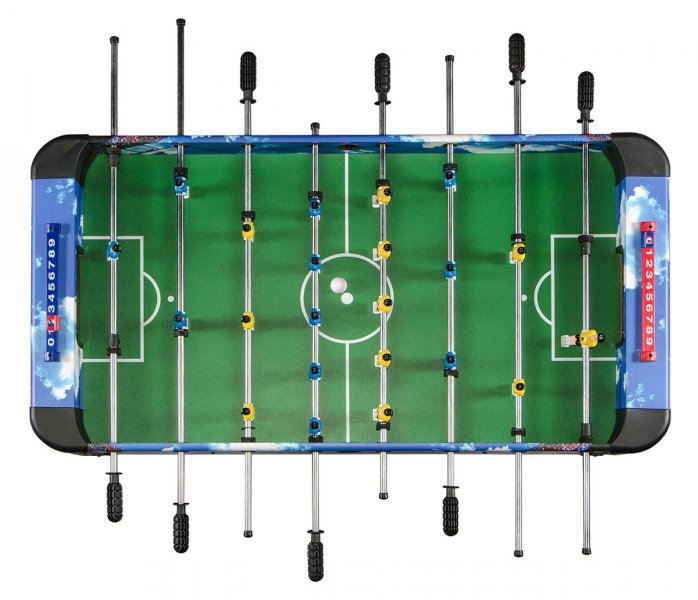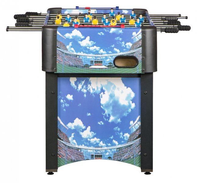 Этот кикер идеально подойдет для веселого и интересного времяпровождения. Яркий дизайн стола, выполненный в классических футбольных цветах, украсит интерьер любой игровой комнаты.