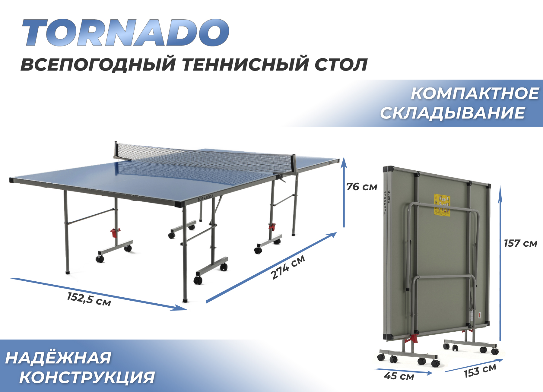 Каждая столешница на отдельной базе. Игровая плита с пластиковым наполнителем, окрашенным в 5 слоёв и защищена алюминиевым кантом. Сетка поставляется в комплекте со столом.