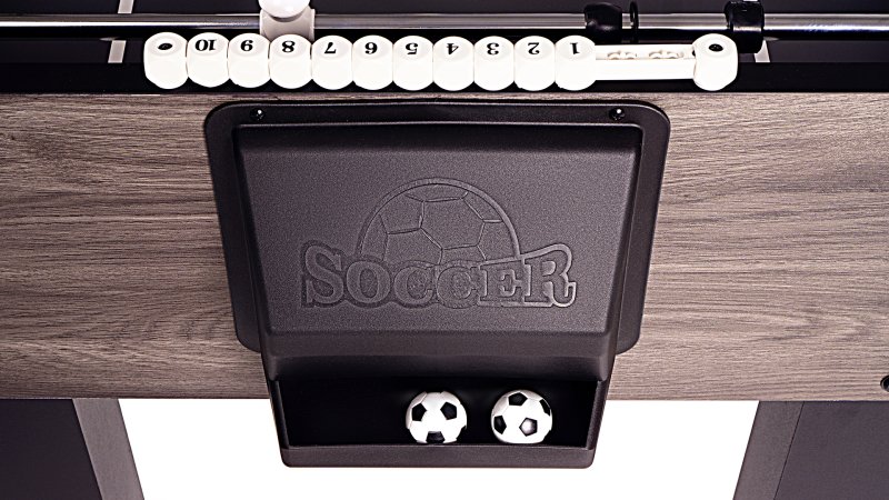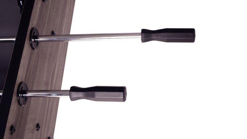 Идеально ровное игровое поле из прочного МДФ с ПВХ-ламинацией для скоростного и хорошо контролируемого перемещения мяча.