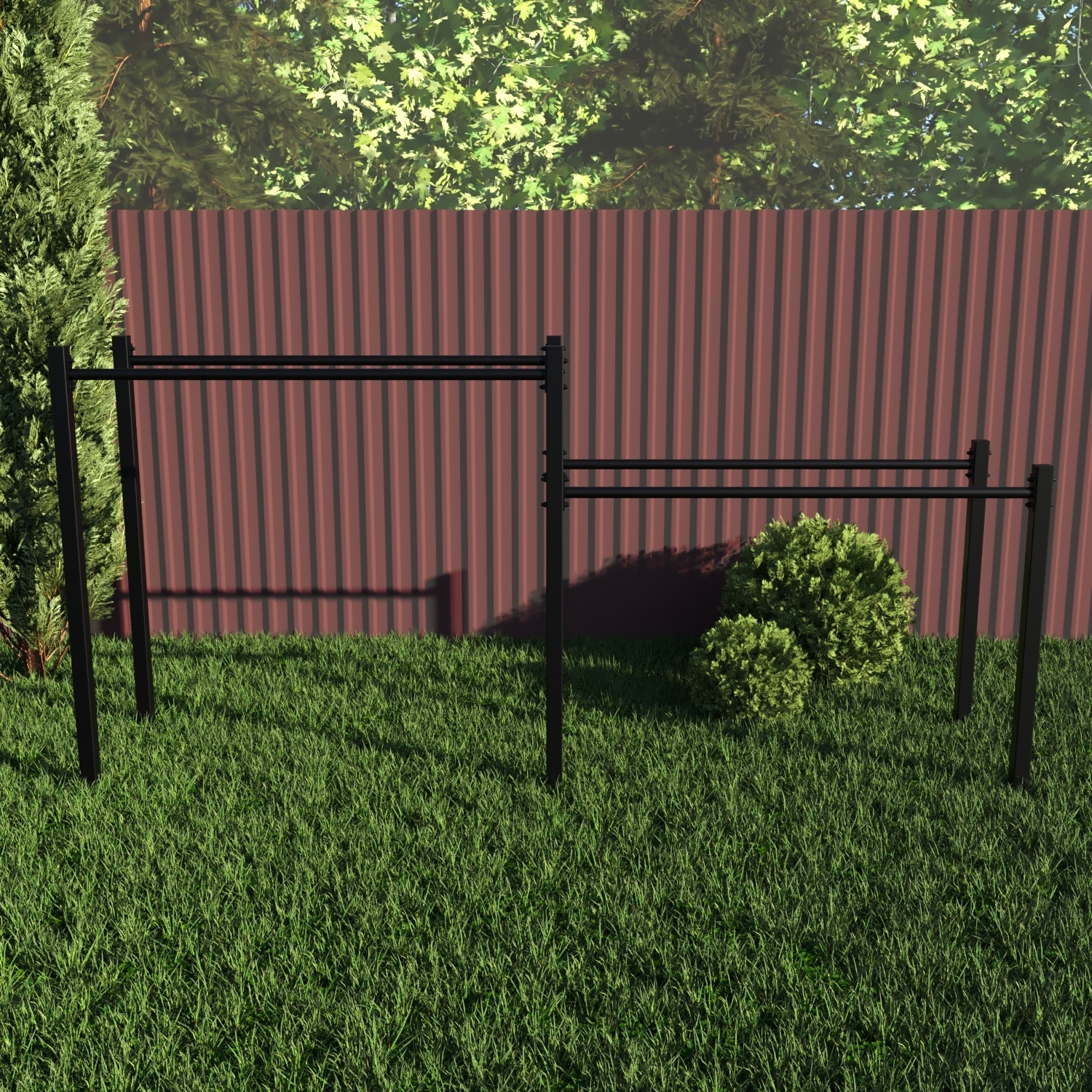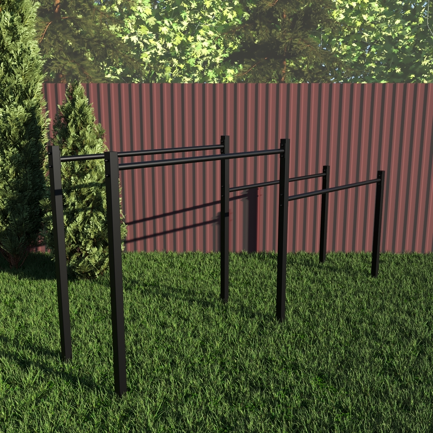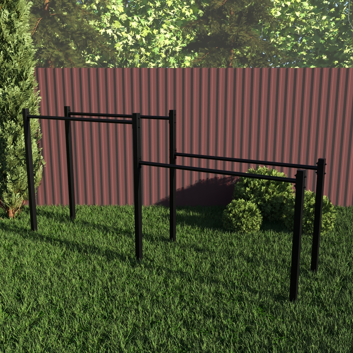 Уличные брусья Sv Sport изготовлены из профильной трубы 60 х 60 х 3 мм и круглой стальной трубы d 33,5 мм и толщиной 2,8 мм. Окрашены качественной, импортной порошковой краской в 2 этапа, устойчивой к коррозии, истиранию и температурным перепадам. Все торцы, болты, гайки заглушены пластиковыми заглушками. Устанавливаются стойки путем бетонировки на глубину не менее 600 мм.
